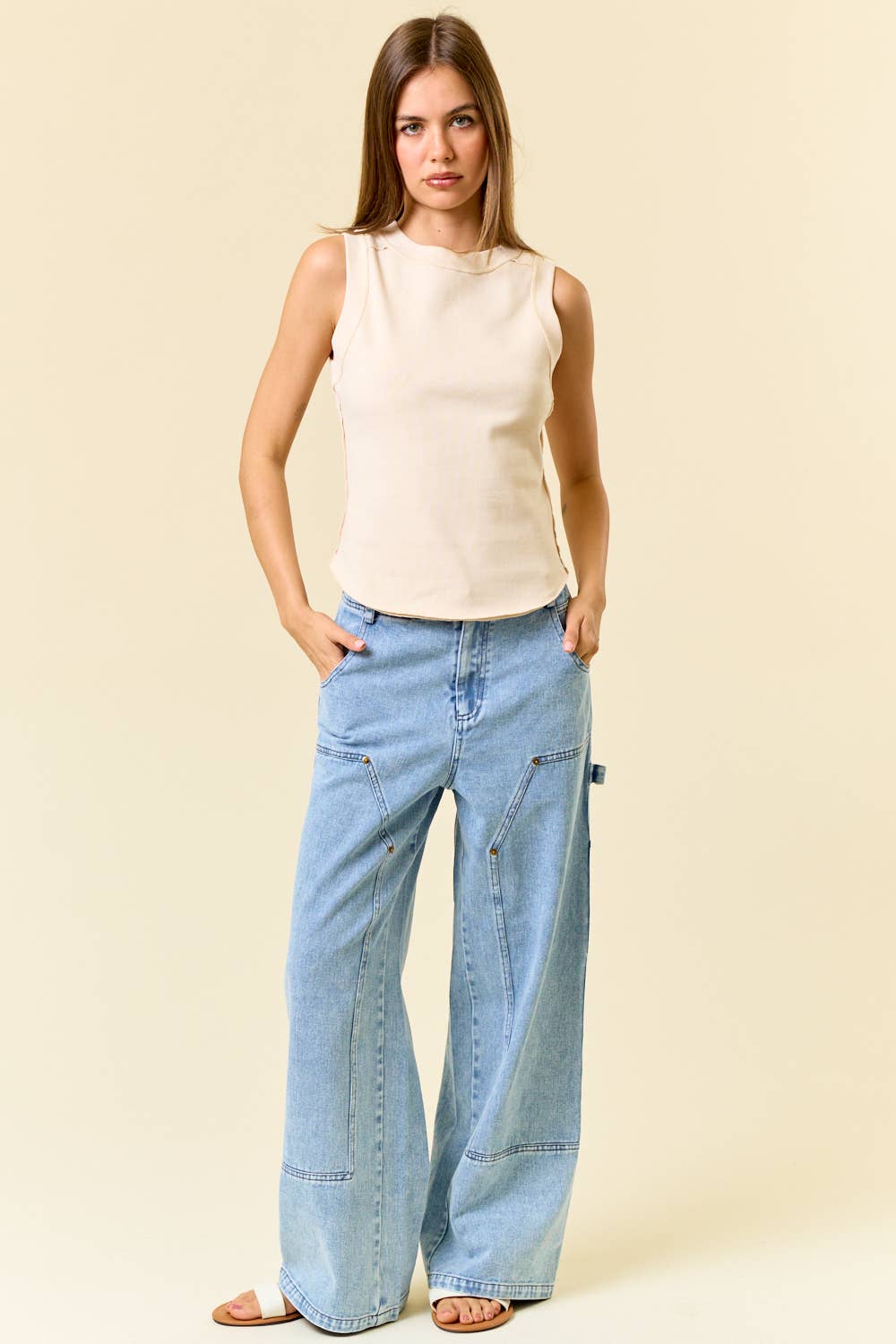 COTTON RIBBED ROUND NECK EXPOSED SEAMING TANK W/ ROUND HEM - Exposed seaming details for added texture - Round hemline for a modern silhouette - Form-fitting style that accentuates the figure - Made from comfortable, breathable cotton ribbed fabric STYLE MEASUREMENTS (SIZE SMALL) - TOTAL LENGTH 22" - BUST 15 1/2" - WAIST 14" - SHOULDER 12 1/2" 96%COTTON, 4%SPANDEX