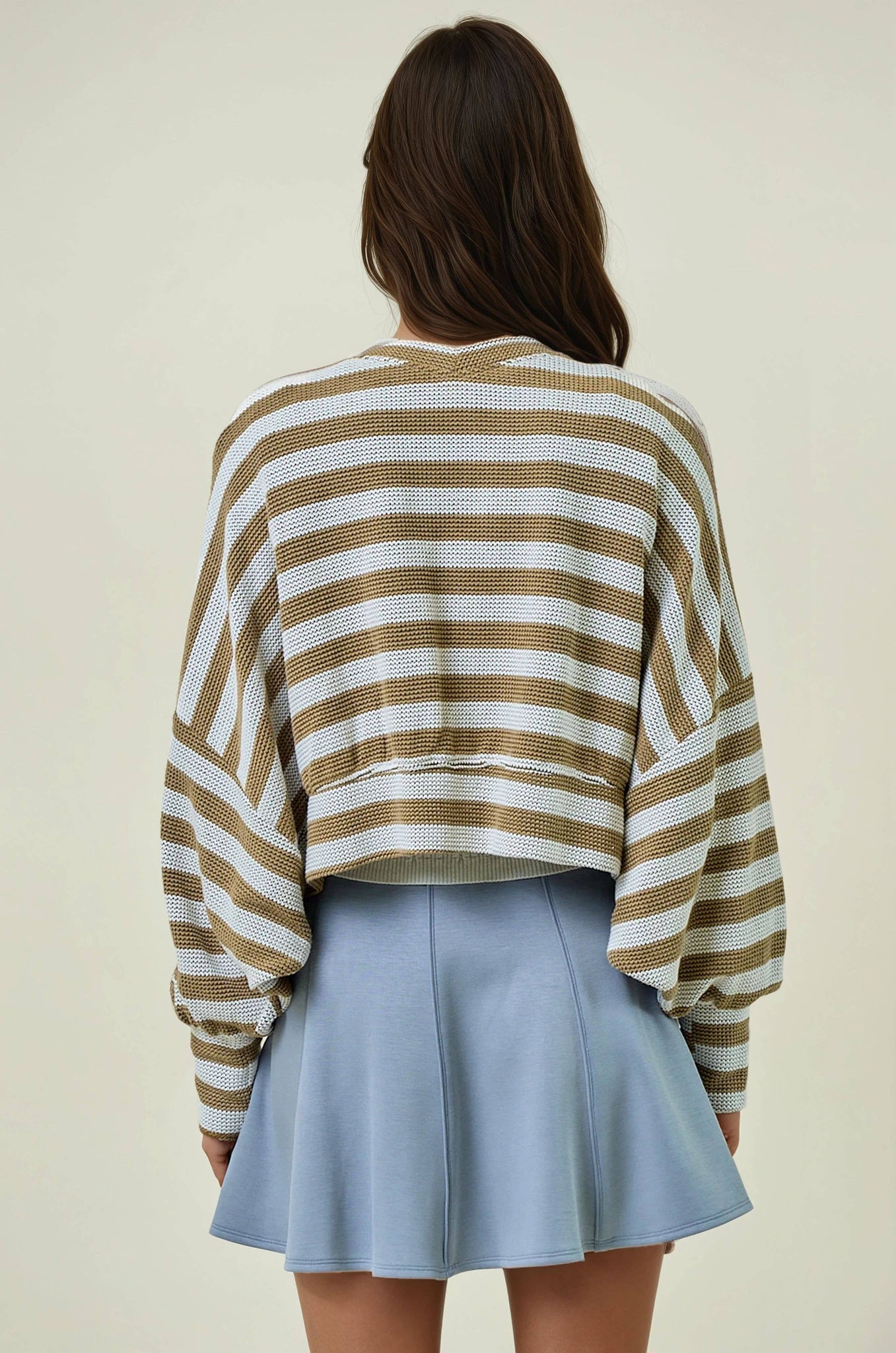 STRIPED KNIT EXAGGERATED SLEEVE SHRUG - Stylish striped pattern: Classic horizontal stripes create a modern, eye-catching statement.