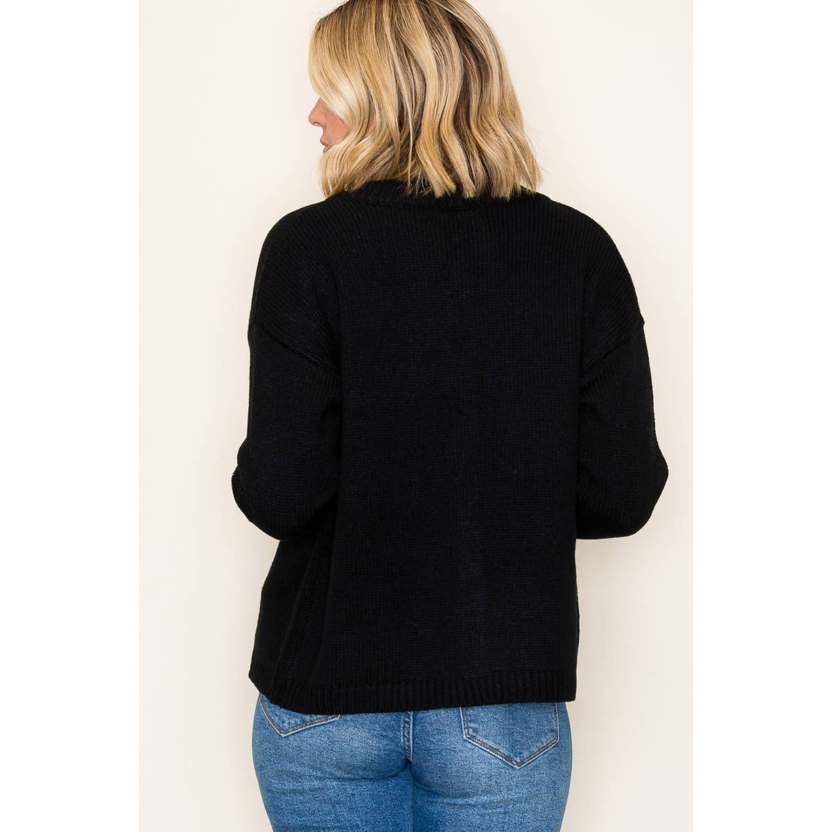 MOCK COLLARED, BUTTON DOWN, LONG SLEEEVE, SWEATER CARDIGAN WITH CHET POCKETS